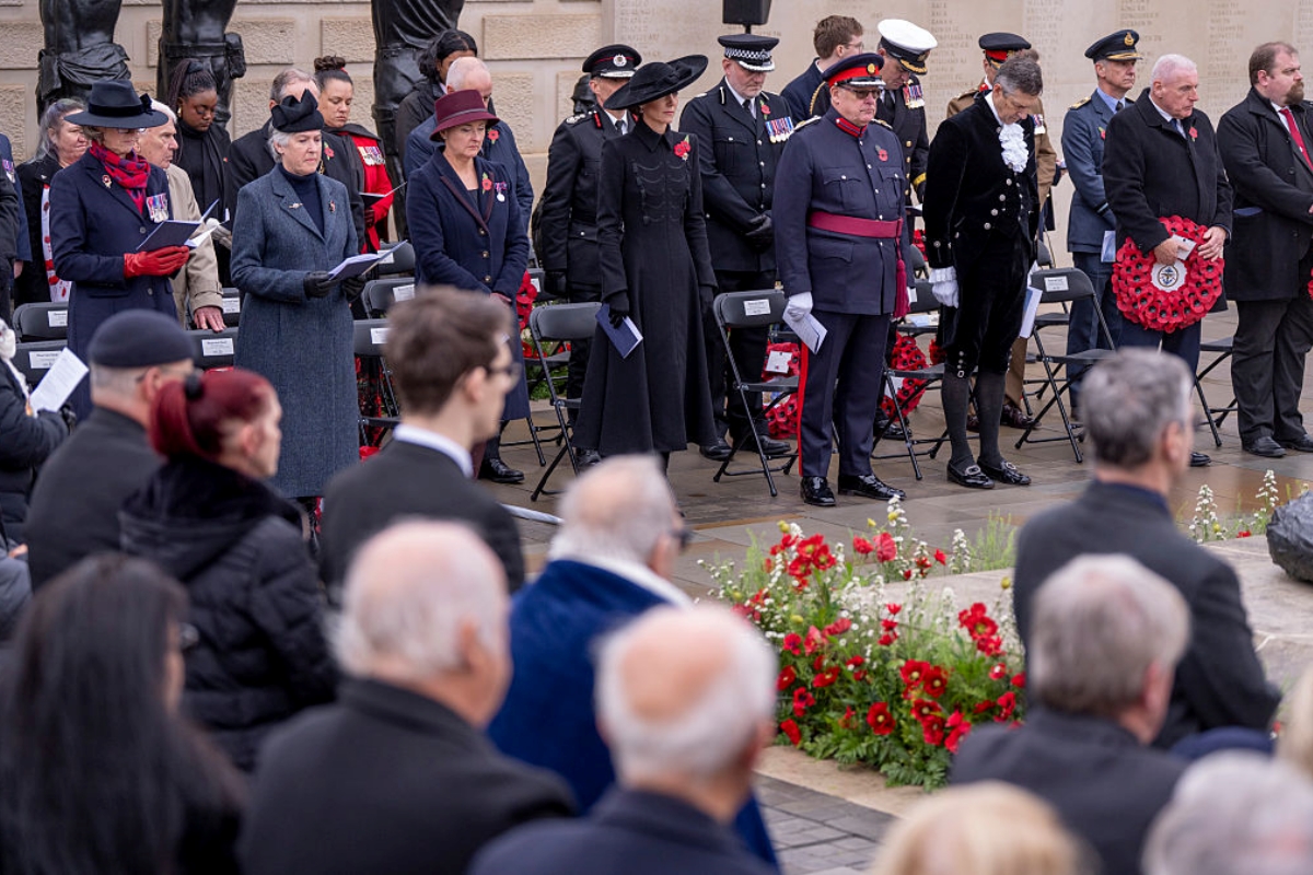 Duchess Kate and Prince William’s profiles highlight their black outfits with the iconic red poppy brooch. This brooch has been considered a historical symbol of homage since 1921. Prince William also appeared with his military medals, underscoring the solemn nature of the date.