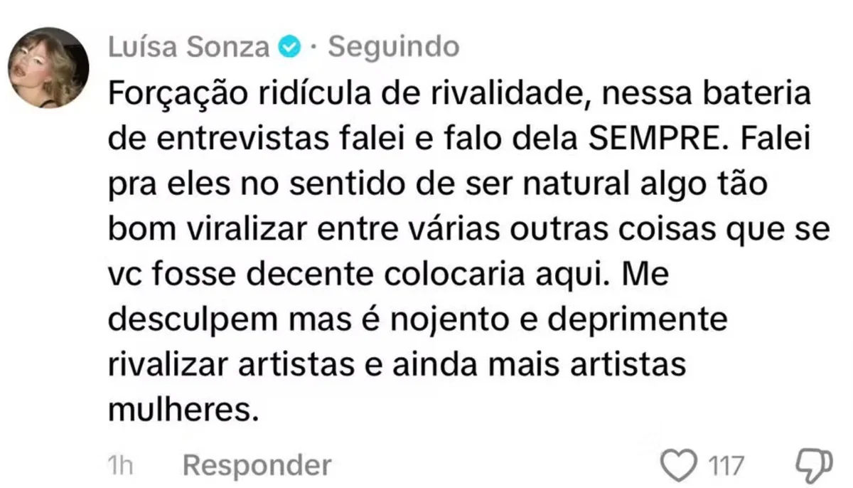 • Luisa Sonza furious at Anitta’s fan’s comment: ‘Disgusting’