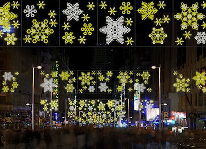 This year’s illuminations in Madrid will be translated into 126 glowing cherries and 7,134 notebooks, which, if placed on the same side on the return trip between Madrid and Toledo, will represent a total of 157 kilometers of decoration. To these are added 13 lighted fir trees and other reasons for a Christmas surprise.