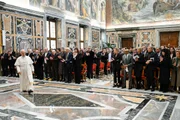 During the meeting, the 70-year-old pope praised the power of film as a way to enlighten and inspire. “When the magical light of cinema illuminates darkness, it also illuminates the eyes of the soul,” the Pope said, calling filmmakers “narrators of hope and pioneers of humanity.”