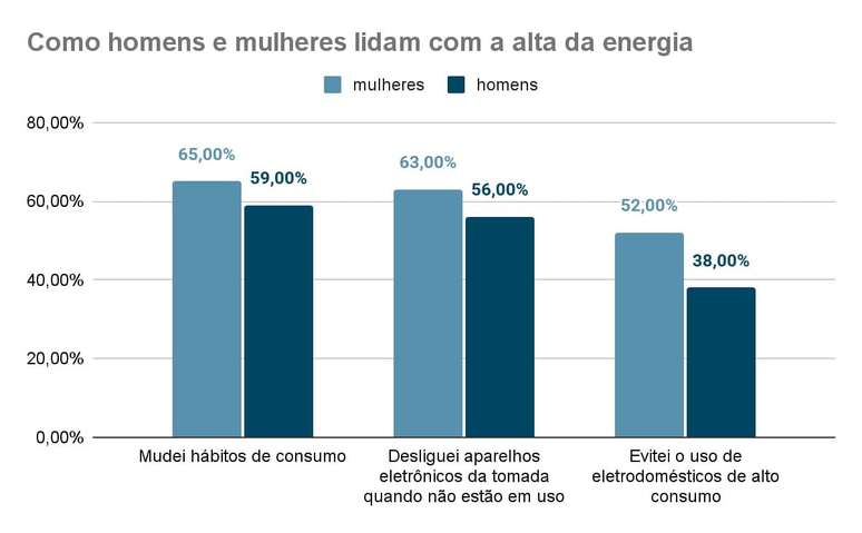 According to the survey, 65% of women say they have already changed their spending habits due to increased utility bills, compared to 59% of men. The most common actions include unplugging appliances (63% vs. 56%) and avoiding using high-power appliances (52% vs. 38%).